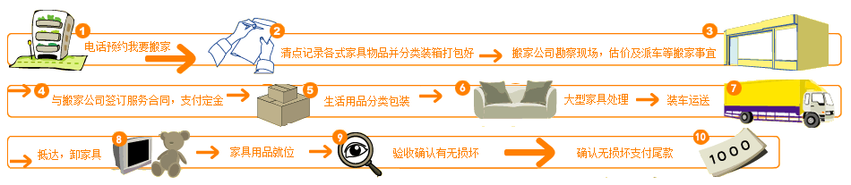 最后,确认本次搬家服务的全部物品是否已经对照您的意思摆放到位,确认本次搬家服务,空手轻松入住全程无需您动手。